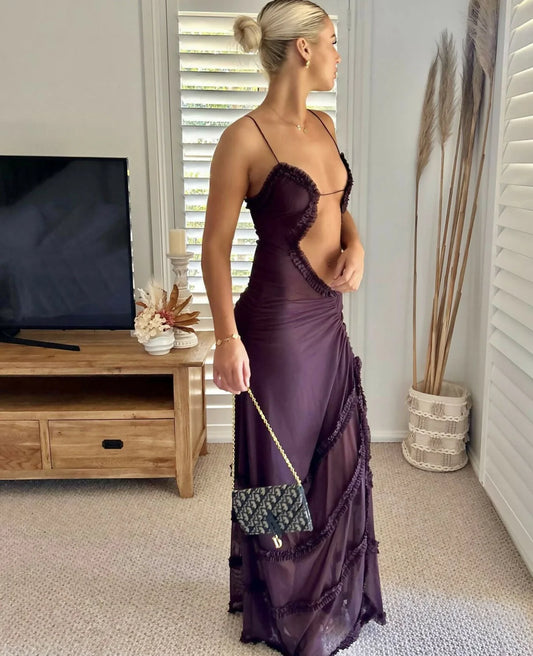 Jaded London Dahlia Hand-Beaded Backless Chiffon Dress