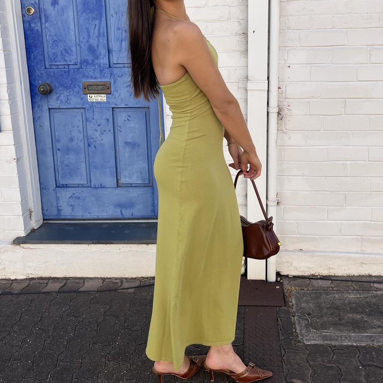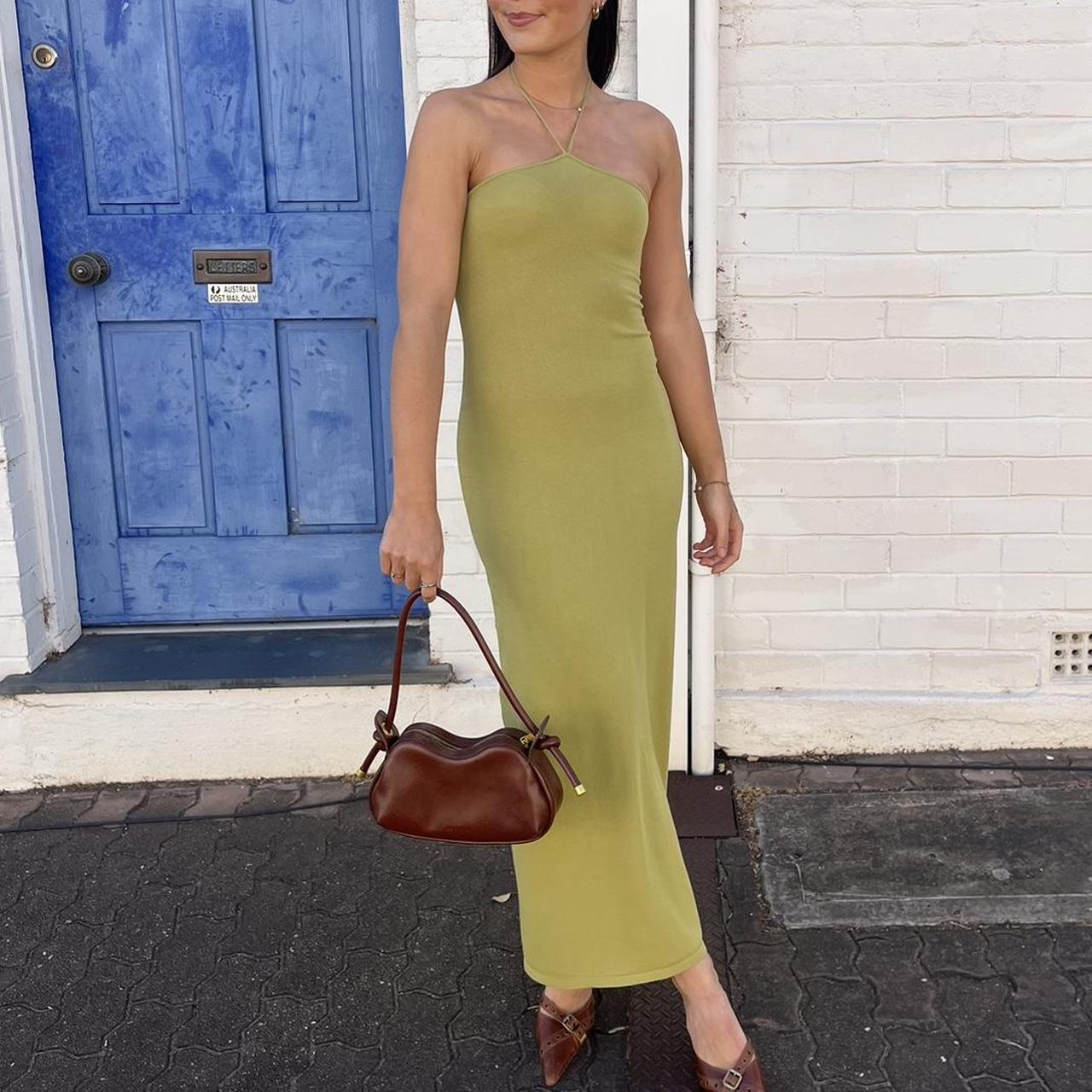 Esmae Halter Maxi Knit Dress is an effortless style cut from a lightweight fabric. The slightly fitted dress features a tubular bind at the top edge with a halter drawstring that ties at the back.